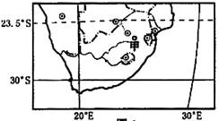 2010年第19届南非世界杯足球赛于6月1 1日在甲城市隆重开幕,读图完成7-8题。