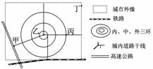 8-9[解析] 第8题,丁既不符合市场最优原则,也不符合交通最优原则。第9题,高速公路、铁路穿过市中心,会干扰城市交通。