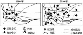12[解析] 本题主要考查了交通运输的发展对城市形态和商业中心布局的影响。读图可知,2010年与1980年相比,首先城区面积扩大;其次,在交通方面出现了地铁,发展了立体交通。因此A项正确。