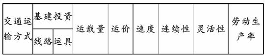 (2010·合肥模拟)下表中数字1-5表示海运、河运、航空、公路、铁路5种交通运输方式优劣的大体排序(“1→5”表示“优→劣”)。分析表格数据,完成2-3题。