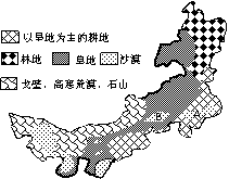 读我国内蒙古地区土地利用类型分布图,回答7-8题。