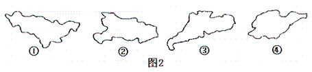 下图1外圆纬度数为n,圆内为某日极昼分布的范围,中心点为极点,此时非阴影部分日期为m。据此回答1-2题。