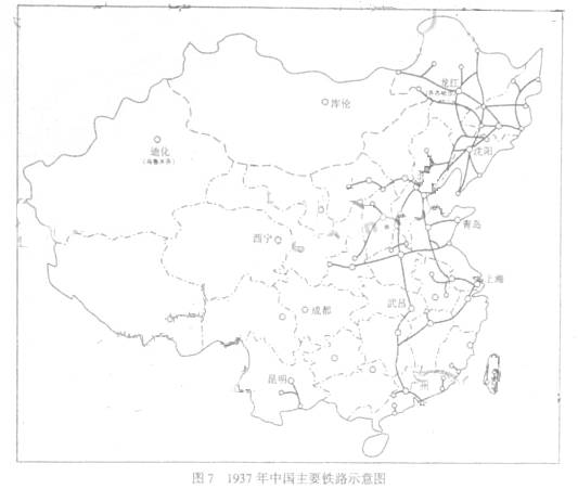 (1)根据上述材料及图7,概括抗日战争前中国铁路的主要特征。(6)