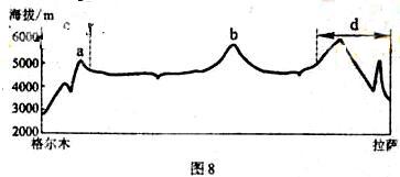 (4)图8示意格尔木至拉萨的地形剖面,读图8回答:(10分)