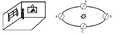 26.下面两图为天津市某房屋内朝南窗户的阳光照射情况和地球公转示意图,请回答: