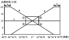 (2)图中a、b段中,表示南极圈内极昼的是_______,表示北极圈内极昼的是_______。