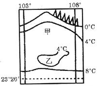 20.读“我国局部1月份等温线分布图”,关于甲地和乙地叙述正确的是 ( )