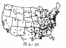 图6-10是美国本土某种工业生产厂的分布图,读图并结合所学地理原理回答37- 39题。