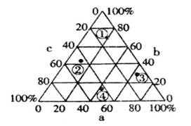 7、如果a、b、c分别表示农业生产社会经济投入中的劳动力投入、生产资料投入、科技投入,下列各点中最能代表亚洲水稻种植业的是: