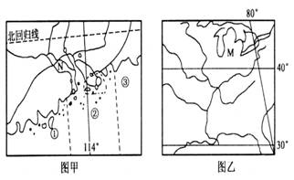 (4)、图甲中N地的农业生产特色是_____________,图乙中M地乳畜业发达,试分析其形成的区位因素______________________。