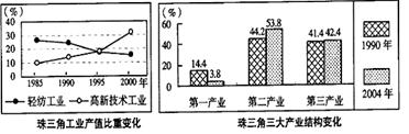 (3)20世纪90年代以来,随着世界新一轮产业结构的调整,珠三角工业发展呈现了以