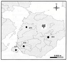 材料一:我国南部某沿海城市(甲)四个PM10监测点位置图。四个监测点的编号分别为S11、S71、S72、S73。