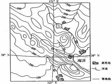 36.下图是某乡镇等高线地形图。为了科学合理进行农业资源的综合开发,该乡镇计划重新进行土地规划。请你根据所提供的地形图信息,为该乡镇进行农业土地综合利用规划。(6分)