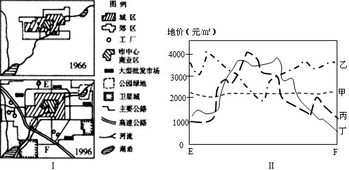 30.某房地产商欲开发图Ⅰ中EF沿线房地产,预先调查了沿线地价,图Ⅱ中正确反映EF沿线地价变化的曲线是( )