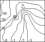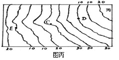 (2)图丙为图甲中阴影部分的放大图像,图中的等值线为等温线(单位℃),该地区山脉大致是