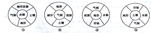 11.下图分别是立体农业、灌溉农业、茶叶园艺农业、热带作物种植业的主要制约条件.判断下列代号与内容对应正确的是 ( )