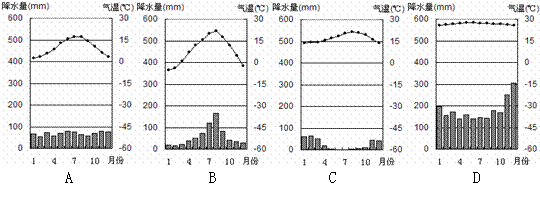 3.下列四幅图能反映火灾发生地气候特点的是C ( )