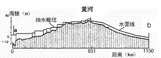 2008年12月28日11时,南水北调东线穿黄河工程暨截污导流工程在山东聊城举行开工典礼。东线穿黄河工程是南水北调东线的关键性项目。项目建设主要任务是打通东线穿黄河隧洞,并连接东平湖和鲁北输水干线,实现调引长江水至鲁北地区,同时具备向河北省东部、天津市应急供水的条件。读我国南水北调工程输水干线纵断面示意图,回答6-7题。