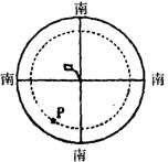 右图为某地某时的星空简图。图中大圆表示地平圈,小圆表示恒星P视运动转迹(其高度角为20°),文字表示星空图上的方向。读图完成3-5题: