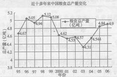 材料三 近十多年我国粮食总产量的变化情况图(见右图)