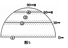 7.图5是北半球气压带、风带分布示意图,