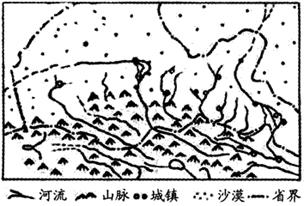 图中所示地区是我国荒漠化扩大较快的地区之一。读图完成31-34题。