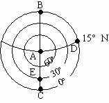14、图示为北京时间某日2时的全球太阳高度等值线图,图中15°N纬线与BAC垂直相交于A点,读图回答下列问题。