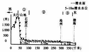 读沧州--石家庄地形剖面图。据此回答36-38题。