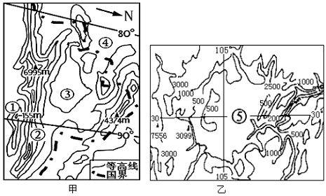 读我国某区域等高线地形图甲、乙,完成6-10题: