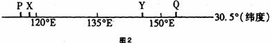图2为世界地图上的一段纬线。P点以西为海洋,Q点以东为海洋,PQ为陆地。读图 2,判断7-10题。