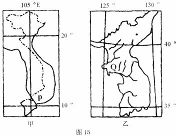 (5)说出甲、乙两国地理位置的相同点和不同点。(5分)