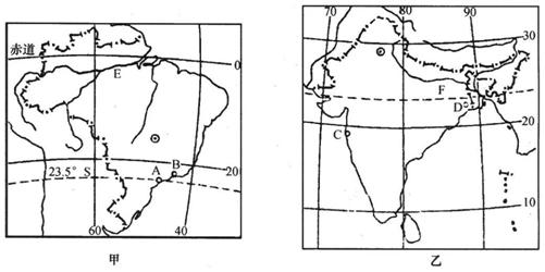 (4)乙图中的F河流是 ,写出该河流域内主要的农作物。(写出两种即可)(3分)