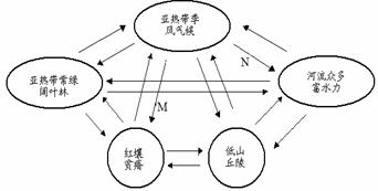 读我国某区域自然环境各要素的关系图(图1),回答1-4题