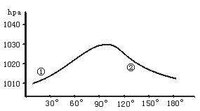图1是沿45°N的气压分布状况图,读图回答1-3题。