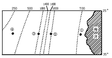 图3为“某地年等降水量线(单位:毫米)分布图”,读图回答9-12题。