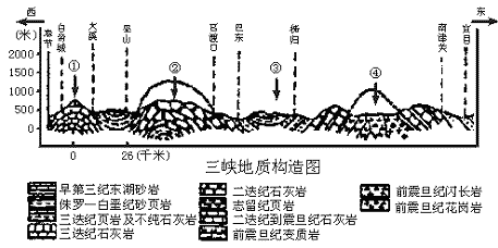 图4为“长江三峡地区地质构造图”,读图回答13-16题。
