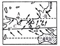 (2)图中B处盛行 季风,图中C处盛行 季风。