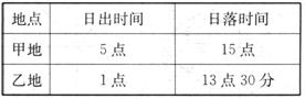 左表为6月22日甲、乙两地日出与日落时间(北京时间)。据此完成15--17题。
