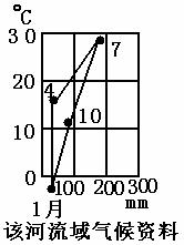 读“某河流水位变化(图9)及该河流域气候资料统计图(图10)”,完成3-4题。
