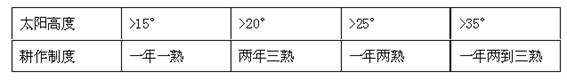 一个地区冬至日太阳高度与耕作制度的关系如上表,则图示的地区的耕作制度为