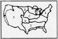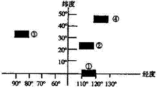 6.下图中的阴影部分表示在四个地区分布的四种农作物。根据图中提供的信息,回答![]()