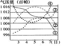 12.下图为“某月3-7日四种天气系统经过不同地区时气压变化过程图”,读图回答