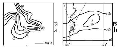 (3)图a是图b阴影部分海湾放大图,请选择①②③④四地中最适宜建港口位置,并说明理由。