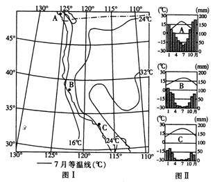 (4)位于30°-40°大陆西岸的地中海气候,“夏干冬雨”是因为夏季受____________控制,冬季受____________控制。