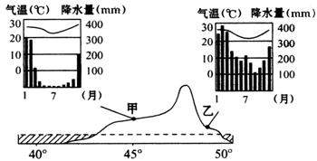 图中甲地的气候类型是 A.地中海气候 B.温带季风气候 C.温带大陆性气 D.温带海洋性气候