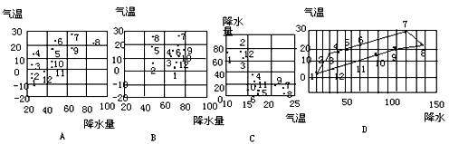 7.读下面四种气候要素图(图中各点的标号表示月份),据此回答