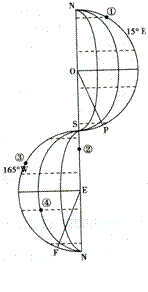 读右图,图中OP、EF为地球公转到近日点附近时的晨昏线,