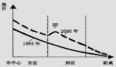 下图“我国某市同一地区不同时期地价曲线图”。读图回答23-24题。