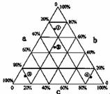 9.如果a、b、c分别代表我国0-14岁、15-59岁、60岁以上人口比重,右图中符合我国人口年龄构成比重状况的点位是: