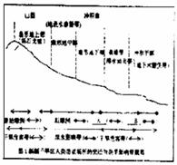 (4)右图中,干旱危害带出现在山前地区的原因 洪水影响带出现在冲积扇中下部的原因为 。